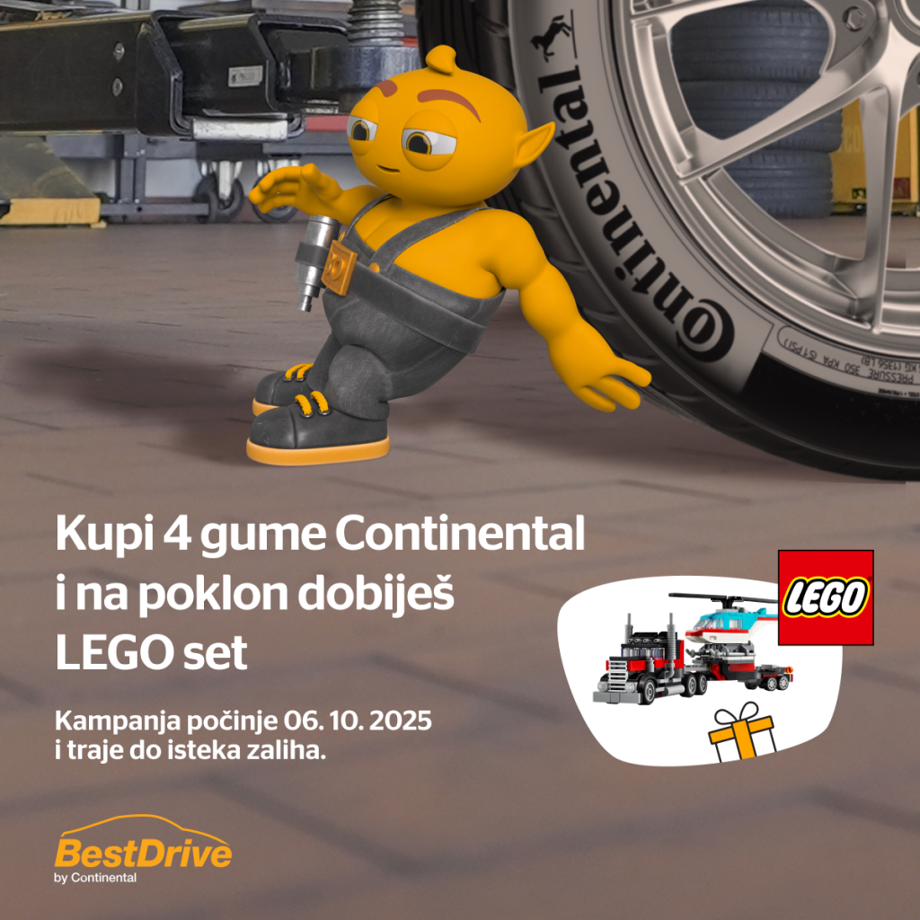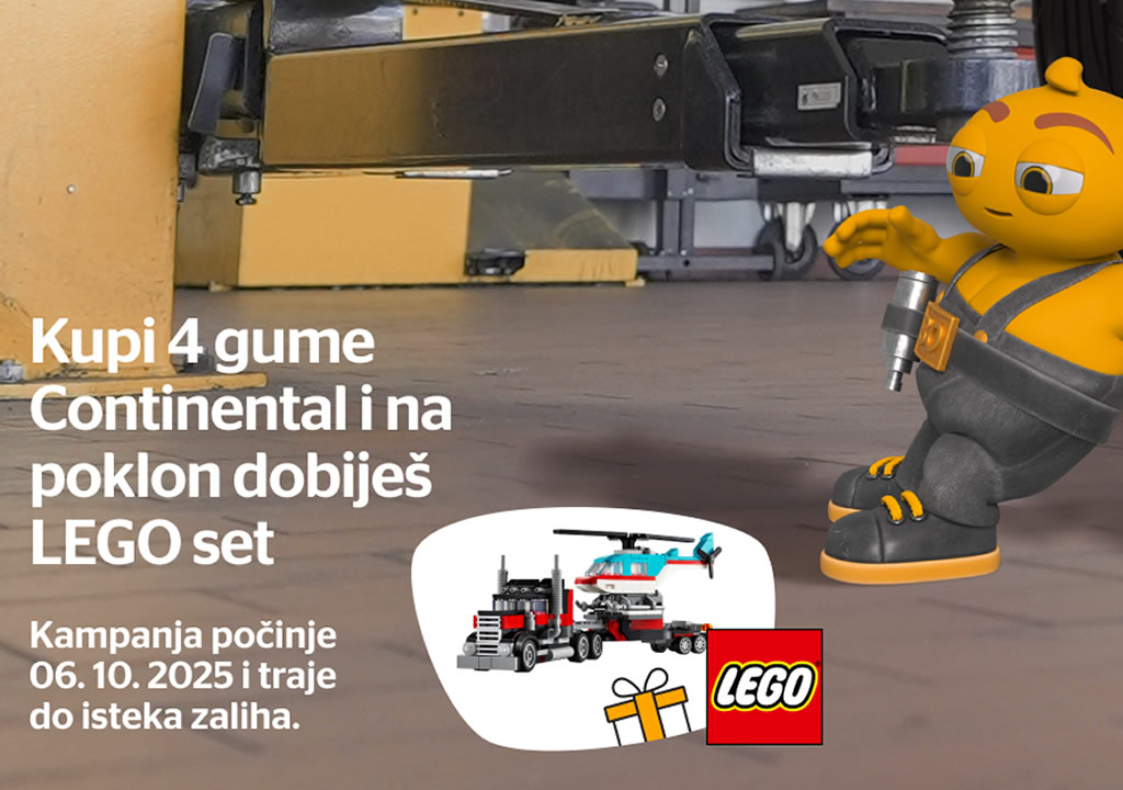 - Za kupovinu 4 komada Continental guma kupac na poklon dobija Lego 3 in 1 set “Kamion“